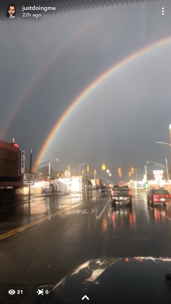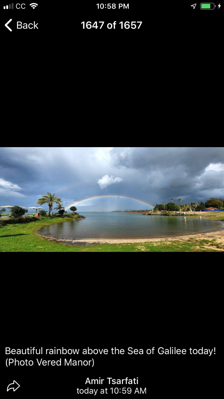 This rainbow appeared Wednesday in Detroit and a similar rainbow appeared across the Sea of Galilee in Israel. My neice took this picture from inside her vehicle!